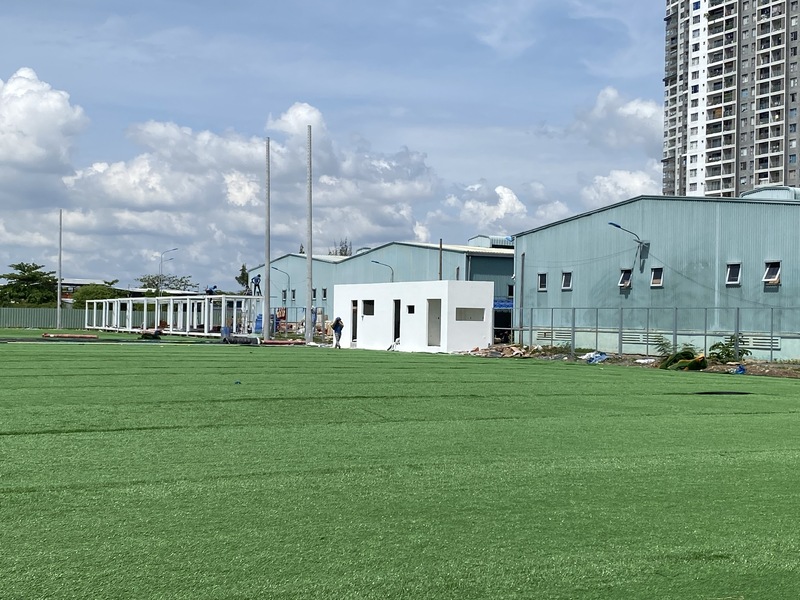 Trong quá trình thi công, đội ngũ đã áp dụng giải pháp nền hạ đạt chuẩn, đảm bảo độ bằng phẳng và khả năng thoát nước hiệu quả. Mặt sân sử dụng cỏ nhân tạo chất lượng cao, tăng độ bền và giảm chấn thương khi vận động. Bên cạnh đó, các hạng mục phụ trợ như khu khán đài, nhà điều hành và lối đi cao su cũng được hoàn thiện chỉn chu, góp phần nâng cao giá trị tổng thể của dự án.